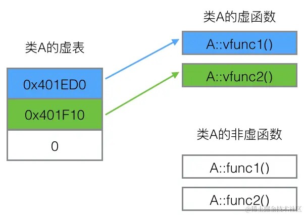 虛表是函數(shù)指針類型的數(shù)組,指向該類定義的虛函數(shù)。