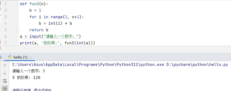 print(a, '的階乘:', fun3(int(a)))