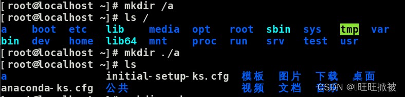 mkdir /a //在根目錄下建立一個(gè)a文件夾 ls / //查看 mkdir ./a //在當(dāng)前目錄下建立一個(gè)a文件夾 mkdir a //其中 ./ 可省略 ls //查看 mkdir b c d //建立多個(gè)文件夾