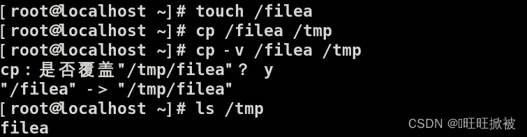 touch /filea //創(chuàng)建一個(gè)filea的文件 cp /filea /tmp //將filea文件復(fù)制到tmp目錄 cp -v /filea /tmp //將filea文件復(fù)制到tmp目錄,同時(shí)顯示進(jìn)度條