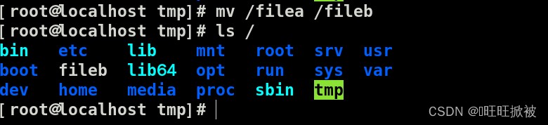 mv /fileb /tmp //移動(dòng)fileb到目錄tmp mv /tmp/fileb /filec //將tmp目錄下的文件fileb移動(dòng)到根目錄下并重命名為filec