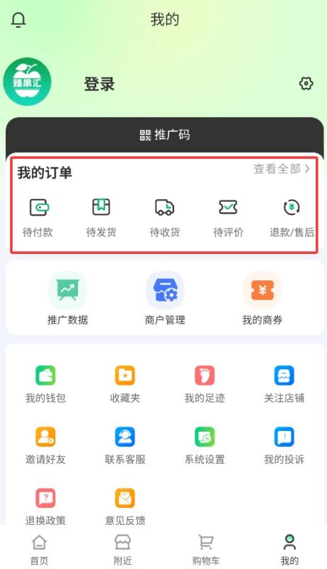 4、進(jìn)入個(gè)人中心后,可管理訂單狀態(tài)(待付款/待發(fā)貨/待收貨/待評(píng)價(jià)等)。
