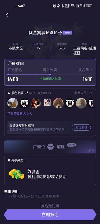 4、然后回到首頁(yè)繼續(xù)點(diǎn)擊你需要參加的比賽,進(jìn)入之后點(diǎn)擊立即報(bào)名;