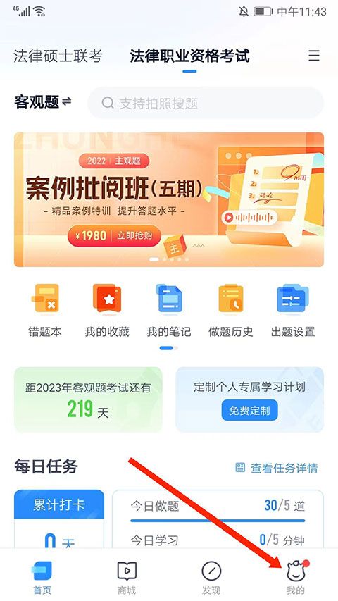 1、檢查您是否在首頁切換了法考/法碩(點擊APP首頁左上角的按鈕進(jìn)行切換);
