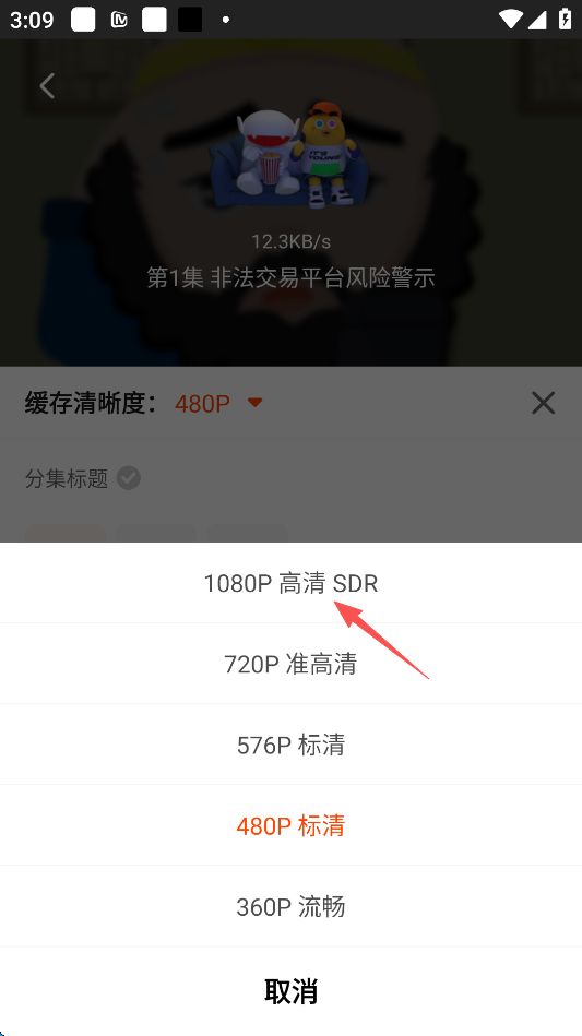 5、點(diǎn)擊集數(shù)即可自動(dòng)下載,也可以點(diǎn)擊彈窗左上角的“緩存清晰度”來(lái)選擇下載的視頻畫質(zhì)。