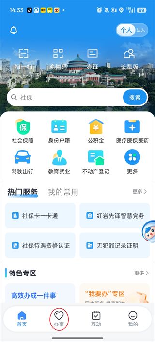 1、點(diǎn)擊屏幕下方的“辦事”。