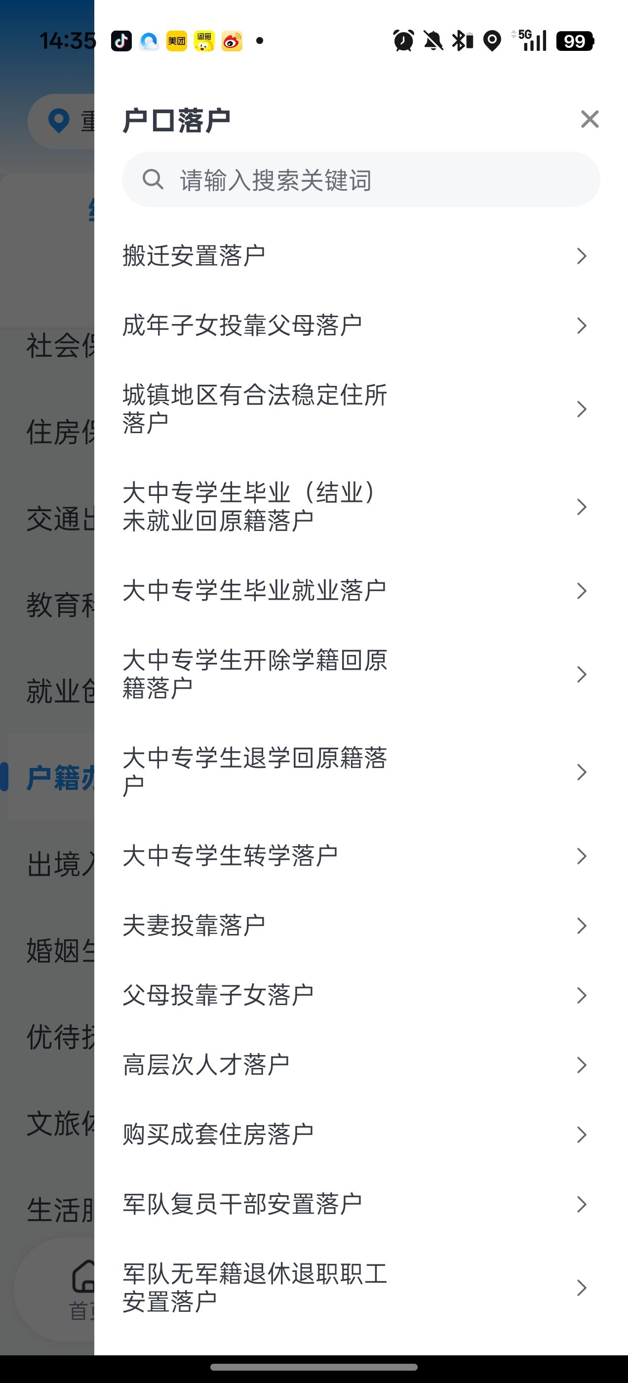 2、點(diǎn)擊屏幕左側(cè)的“戶籍辦理”。