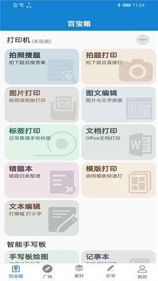 1、在首頁(yè)選擇要打印的內(nèi)容,目前可調(diào)整字體大小的打印類型,只有圖文編輯、標(biāo)簽打印、文本編輯。