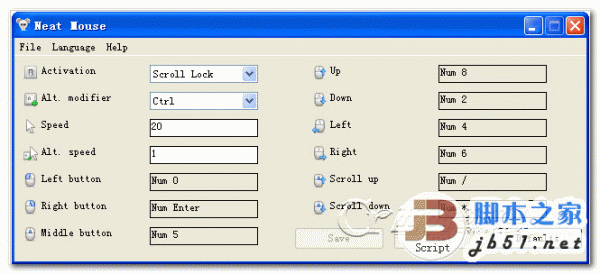 NeatMouse可以通過下列按鍵之一激活:Num Lock, Scroll Lock, Caps Lock, 或者通過自定義的熱鍵。