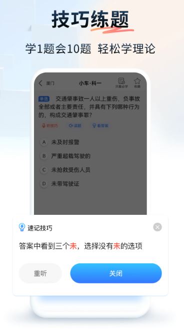 4、技巧練題: 利用技巧學習法,讓您學1題會10題,提高效率,輕松應對駕考。