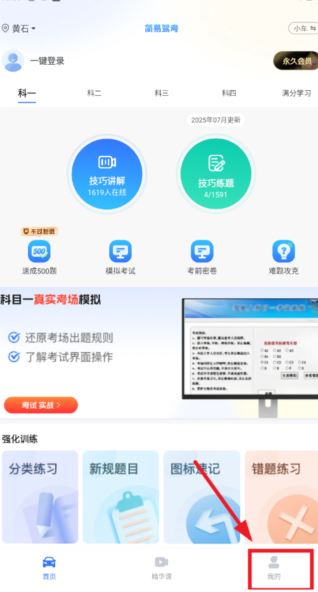 1、打開簡易駕考app,進入首頁,點擊右下方我的