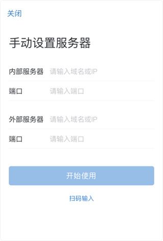 可通過(guò)填寫(xiě)內(nèi)外部服務(wù)器域名及端口,手動(dòng)設(shè)置所在企業(yè)的服務(wù)器。