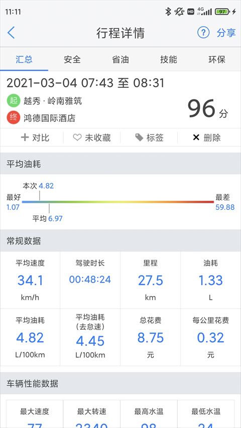 對(duì)每條行程各方面數(shù)據(jù),包括出發(fā)時(shí)間、到達(dá)時(shí)間、起點(diǎn)位置,終點(diǎn)位置,里程數(shù),平均油耗,速度,時(shí)長(zhǎng),得分,行為統(tǒng)計(jì),路線記錄等進(jìn)行詳細(xì)記錄;提供汽車檢測(cè)功能,讓用戶了解車輛的健康程度;提供保養(yǎng)記錄功能,為自己的車輛進(jìn)行檔案記錄;行程電腦只能在車上查看數(shù)據(jù),但優(yōu)駕可以隨時(shí)隨地查看數(shù)據(jù);在經(jīng)濟(jì)型的汽車上使用優(yōu)駕,能獲得與高端汽車行車電腦同等甚至更高級(jí)的功能。