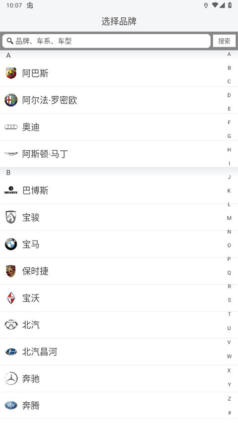 1、首先進(jìn)入軟件,打開(kāi)后首先會(huì)需要你綁定車型,車主們根據(jù)自己的汽車選擇對(duì)應(yīng)的車型,如果找不到的話可以直接搜索