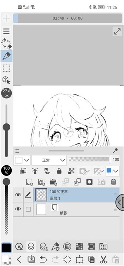 4、顯示之前拍過的照片,點(diǎn)擊拍攝的照片,這樣一來,畫布上就讀取了線條畫的照片。