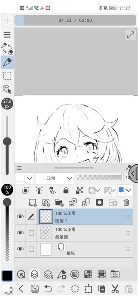 在這里,在線條畫下面制作皮膚分層,這樣涂上皮膚的時(shí)候線條畫就不會(huì)隱藏起來。