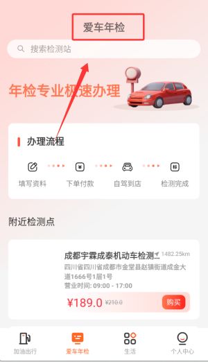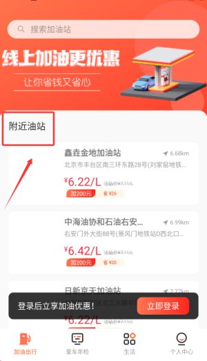5、一鍵加油:操作簡單便利,選擇附近的加油站即可。