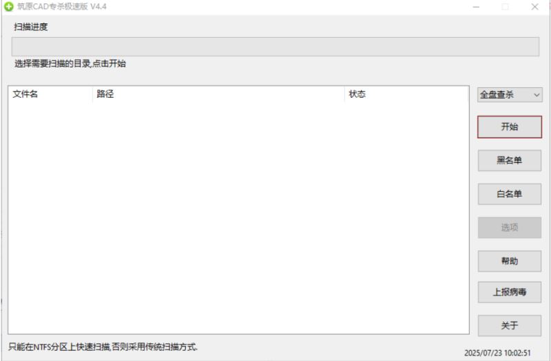 筑原CAD病毒專殺工具是一款簡單而又實(shí)用的AutoCad病毒清除器,主要功能是對CAD病毒進(jìn)行掃描清除、修復(fù)受損的CAD的文件。軟件運(yùn)行時(shí)將掃描硬盤上的AutoCAD病毒,查殺效果顯著。針對掃描結(jié)果,您可選擇刪除、僅掃描或放至回收站等模式,還內(nèi)置了白名單和黑名單添加功能,為您預(yù)留自由選擇空間,增強(qiáng)病毒防范的準(zhǔn)確度。該軟件無需安裝,解壓后即可直接運(yùn)行。