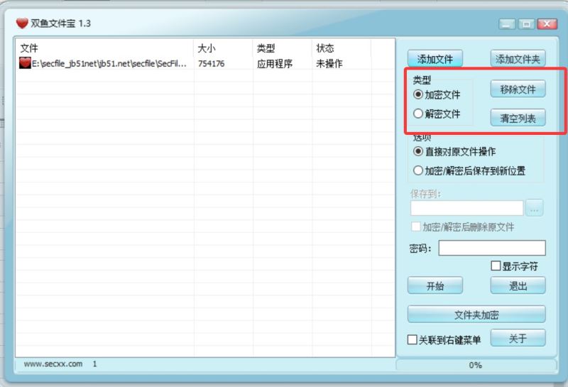 第二步,選擇加密操作還是解密操作,設(shè)置是對原文件操作還是保存到新位置。