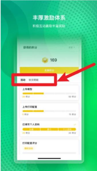 3、在“積分激勵(lì)”模塊中,用戶可通過(guò)上傳模型、完善信息等方式獲取積分,參與活動(dòng)兌換獎(jiǎng)勵(lì)。