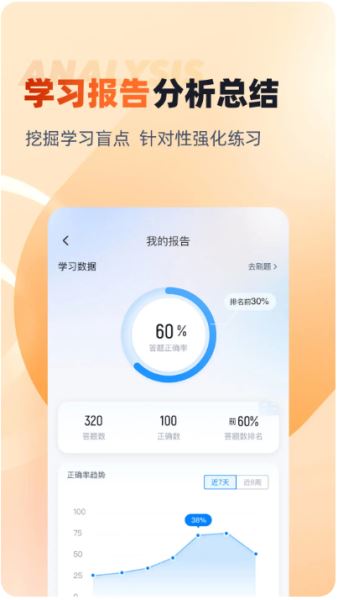 學(xué)習(xí)數(shù)據(jù)追蹤:實(shí)時(shí)記錄練習(xí)時(shí)長(zhǎng)、正確率、知識(shí)點(diǎn)掌握情況,生成學(xué)習(xí)報(bào)告,幫助用戶調(diào)整復(fù)習(xí)策略。