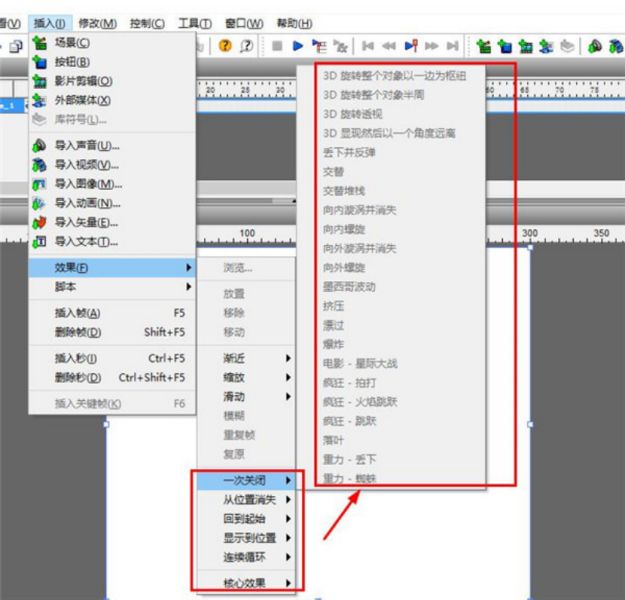 這個類別中主要包括一次關(guān)閉、回到起始、從位置消失、連續(xù)循環(huán)、顯示到位置等分類。下圖紅圈圈定的部分五個