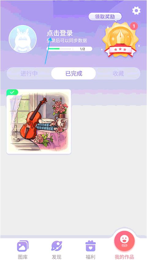 在這里可以看見小編已經(jīng)完成的一幅作品,這個(gè)時(shí)候我們點(diǎn)擊上面的登錄。