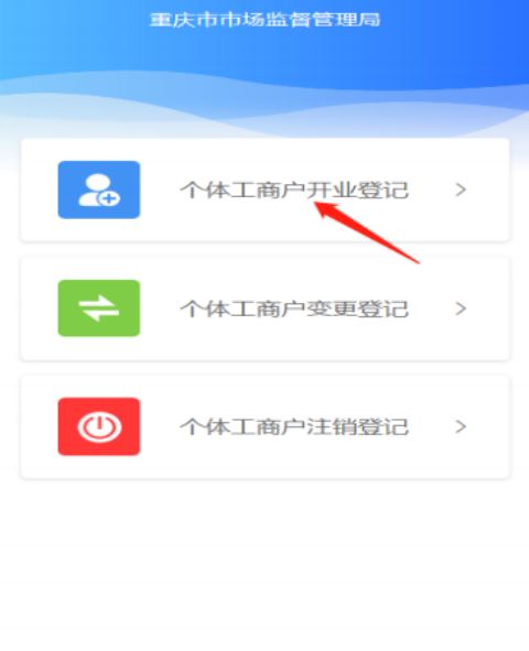 刷臉認證成功后將進入個體工商戶注冊登記的主界面,點擊個體工商戶開業(yè)登記