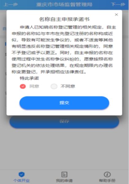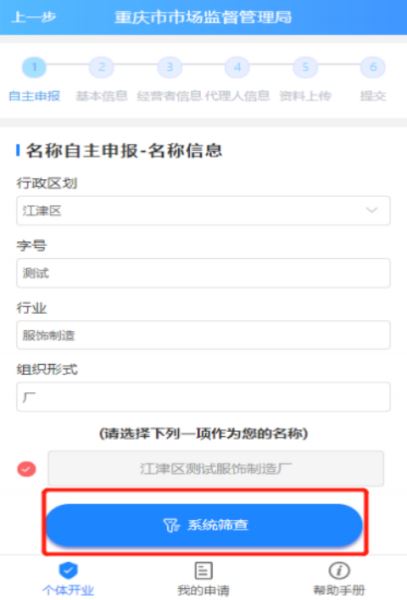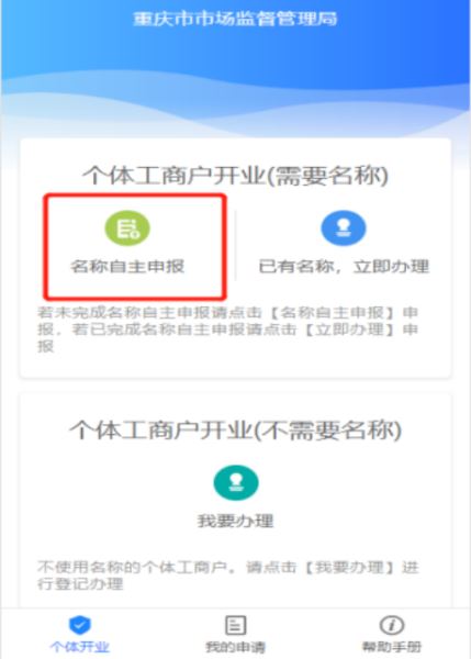 以需要名稱的個體工商戶為例。點擊【名稱自主申報】