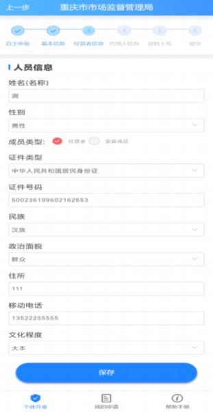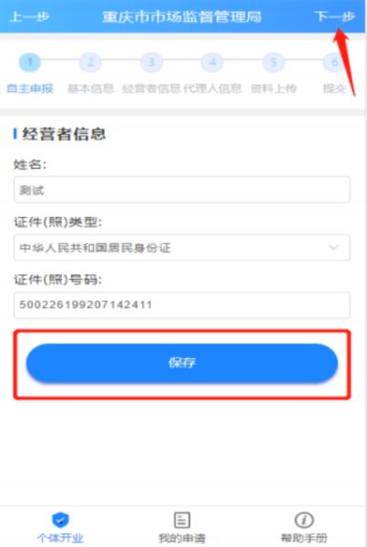 錄入經(jīng)營者信息,確認無誤后點擊【保存】,然后點下一步