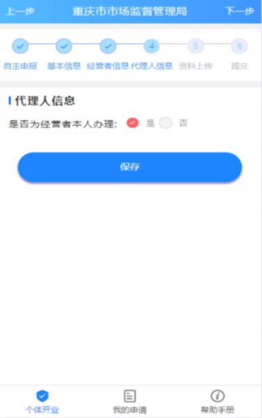 是否為經(jīng)營者本人辦理,點擊【保存】,下一步