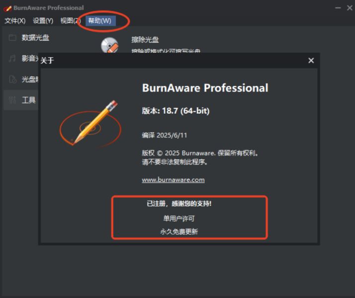 簡單易用的光盤刻錄工具 BurnAware Pro v15.8 綠色便攜免費中文25.14MB / 08-25