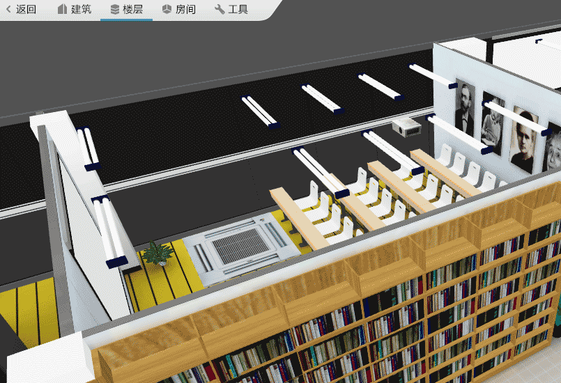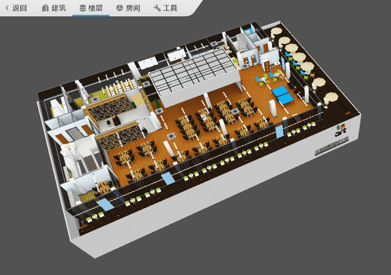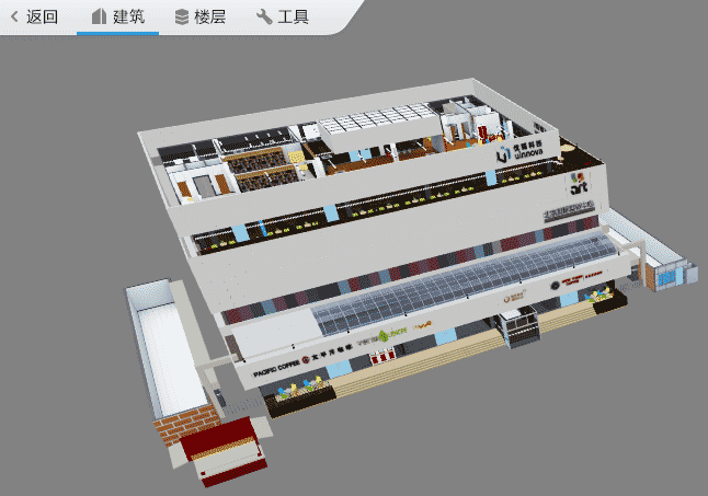 室外是能看到天看空的,室內(nèi)時候在樓層基本是深灰色背景,建筑基本時候是淺灰色背景。