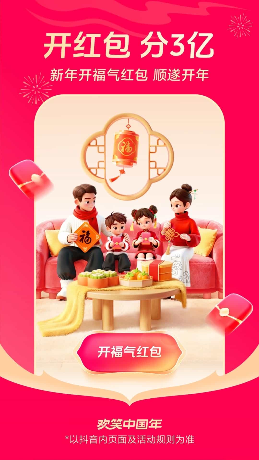 2026抖音歡笑中國年活動開始啦!大量紅包等你來贏!