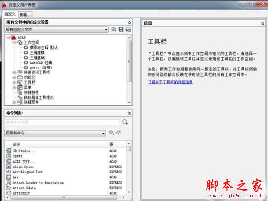 示例里面新建工具欄,命名為“對象捕捉(簡)”。從“對象捕捉”工具欄里面拷貝幾個自己常用的命令,粘貼到新建的工具欄里面。我拷貝了3個命令,端點捕捉、中點捕捉和圓心捕捉。添加完命令,點擊確定。