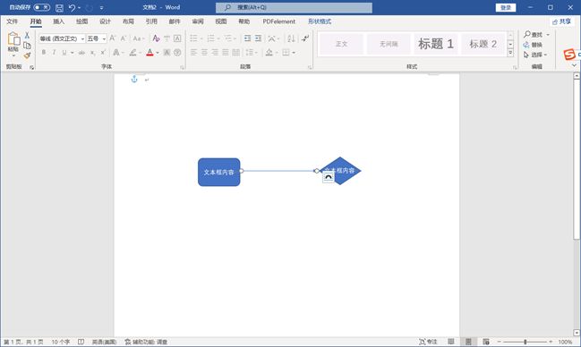 4、再次單擊“形狀”選項(xiàng)并選擇其中帶箭頭的線條形狀,在畫布出現(xiàn)“+”光標(biāo)后自由拖動(dòng)以生成想要的連接線,然后將線條放在一個(gè)形狀的任何一側(cè),并把它連接到另一個(gè)形狀。