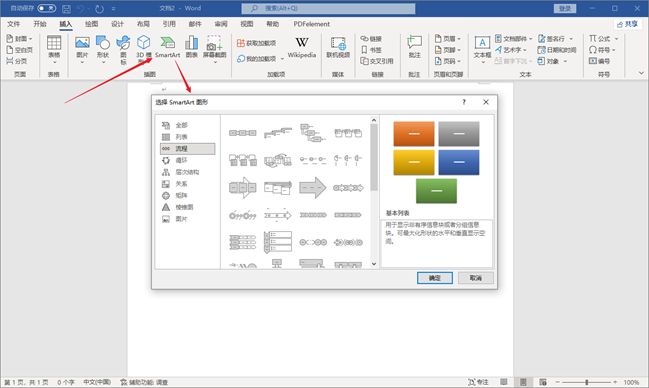 1、打開Microsoft Word,在“插入”菜單中,你可以看到 SmartArt。點(diǎn)擊SmartArt,在它彈出的選項(xiàng)卡中點(diǎn)擊“流程”部分,選擇你想要的布局,然后根據(jù)自己的需求調(diào)整相應(yīng)的圖形參數(shù)。