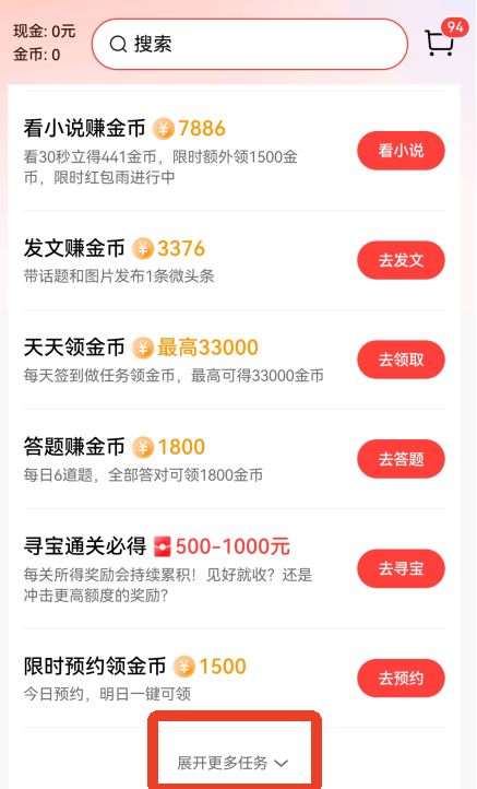 2、下滑點(diǎn)擊【展開更多任務(wù)】,大概需要點(diǎn)兩次,有很多任務(wù)。