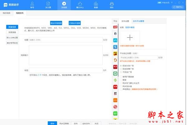 9、支持視頻功能,易媒助手軟件可以直接發(fā)布視頻到多個平臺