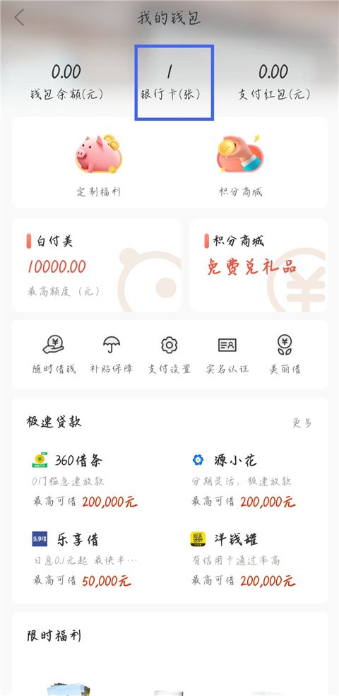 2、點擊【銀行卡】。