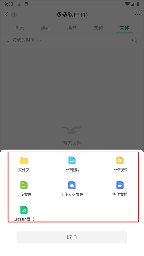 1、此功能僅限班主任使用,在班級(jí)中的文件界面內(nèi)點(diǎn)擊右下角+號(hào)