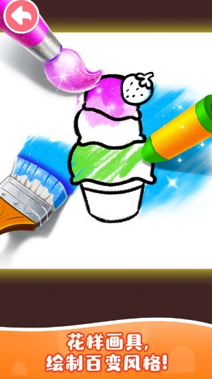 3、自由選擇:寶寶可以自行選擇要使用的繪畫工具,并能將作品裝扮得更加唯美;