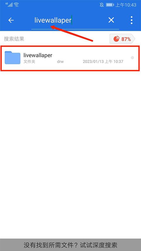 3、也可以在“搜索框”欄目,搜索“livewallaper”文件夾,同樣可以看到下載好的彩蛋視頻壁紙?jiān)募?nèi)容了。