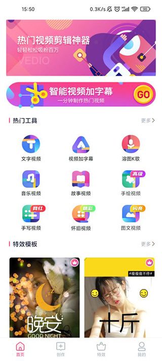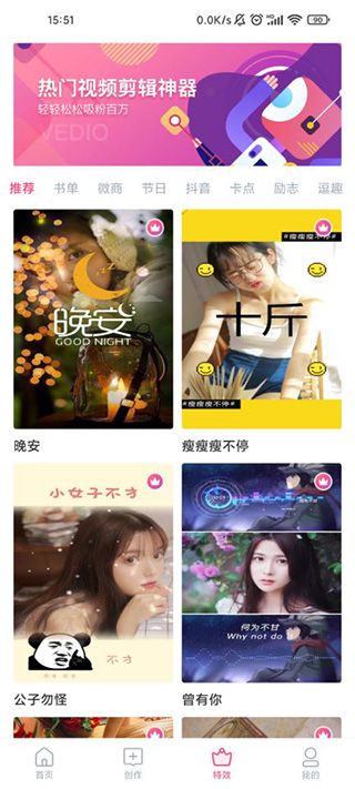 5、可以直接對(duì)視頻進(jìn)行編輯操作,隨便添加各種特殊效果,還有大量的熱門(mén)模板推薦;
