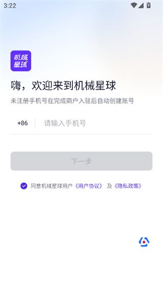 1、打開機(jī)械星球app后使用手機(jī)號注冊。