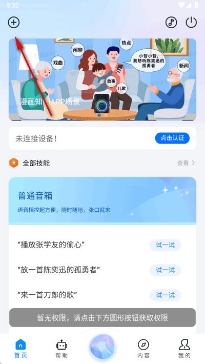 1、打開知閑ai助手app進(jìn)入首頁(yè),點(diǎn)擊左上角加號(hào)。