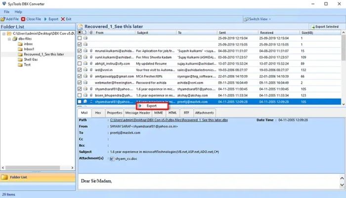 SysTools DBX Converter是一款文件格式轉換工具,用戶能使用這款軟件將DBX格式的郵件進行轉換至其他的文件格式。軟件支持多種文件格式的轉換輸出,并且軟件支持郵件的預覽,用戶能在其中選擇需要進行轉換的郵件。軟件還支持文件批量處理,能同時進行多個文件的轉換處理。
