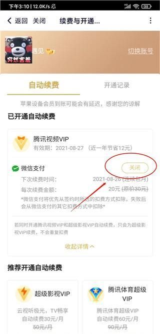 騰訊視頻播放器手機版vip自動續(xù)費怎么關閉?