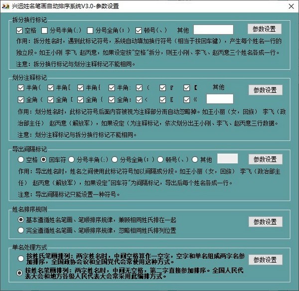 4、自動(dòng)導(dǎo)出:對(duì)整理后、提取后、排序后的姓名按原始順序或排序后的順序?qū)С龅揭粋€(gè)記事本文件中,導(dǎo)出的姓名之間可以使用空格、回車符、分號(hào)、頓號(hào)或其他符號(hào)加以間隔。