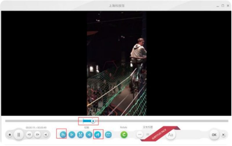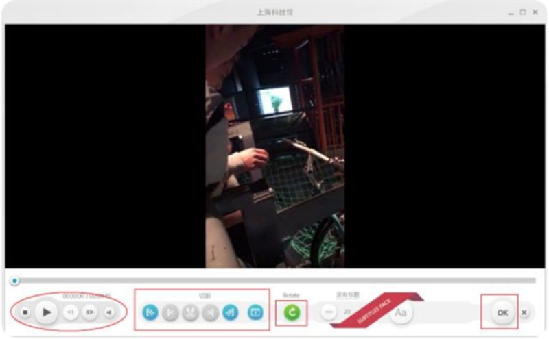 界面,在這里可對視頻進(jìn)行裁剪、旋轉(zhuǎn),如果不知道每個按鈕的作用,當(dāng)鼠標(biāo)移到該按鈕上時,便會顯示提示,告訴你該按鈕的用處,編輯好便可點(diǎn)擊「OK」回到原界面。